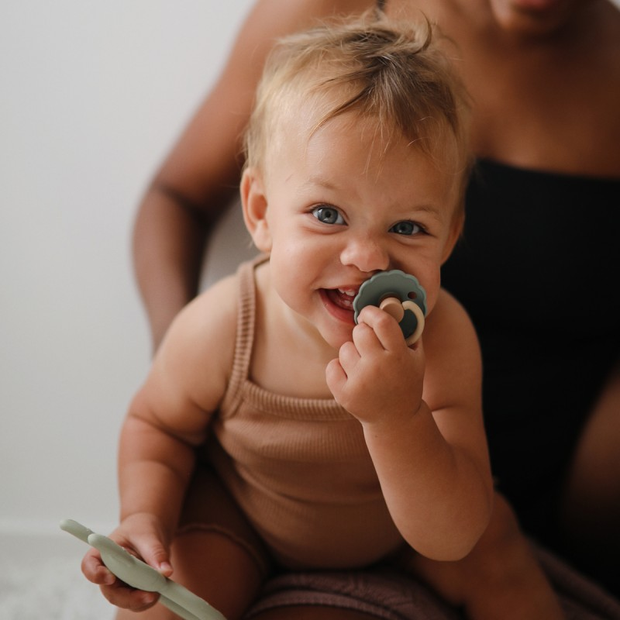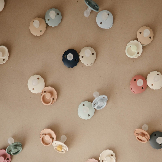 A chupeta FRIGG Daisy com bordas embelezadas que imitam pétalas de flores é a essência do design elegante. Os detalhes florais e modernos chamam a atenção de todas as mães preocupadas com o estilo. Isso faz da FRIGG a escolha perfeita para as mães de hoje que dão grande importância aos designs clássicos com toques modernos na escolha dos itens essenciais para o bebê. A chupeta FRIGG Daisy é cheia de charme e está disponível em cores monocromáticas e mistas.
