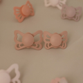 FRIGG Butterfly lembra o formato de uma borboleta. O escudo com bordas onduladas possui grandes orifícios de ventilação e no meio há um centro redondo que destaca a elegância da chupeta.