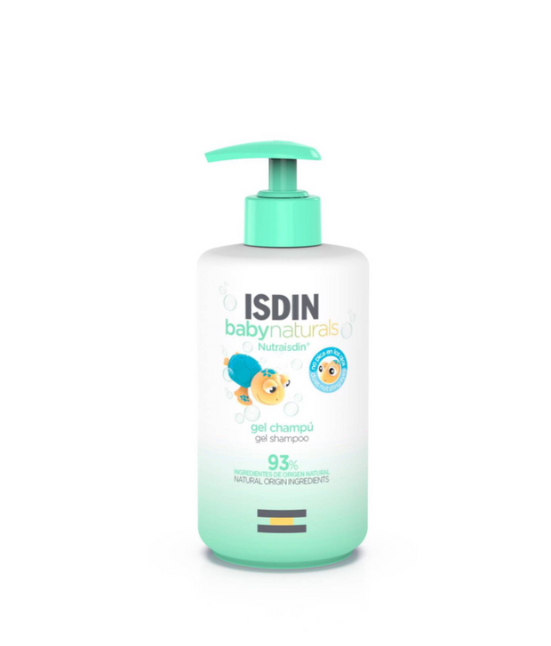 Gel-champô Baby Naturals Isdin 400ml, para a higiene diária da pele e cabelo do bebé, com 93% de ingredientes de origem natural. Respeita a pele delicada do bebé, protegendo o seu equilíbrio cutâneo, deixando uma sensação de hidratação e suavidade muito agradáveis. Pode ser utilizado desde os 0 meses.