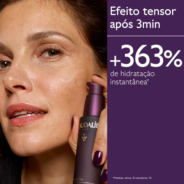 Graças à sua alta concentração em ácidos hialurónicos (baixo e alto peso molecular), O Sérum Premier Cru oferece uma hidratação imediata e intensa à pele. Este sérum é enriquecido com açúcares tensores de efeito imediato visível a partir de 3 minutos e até 6 horas.