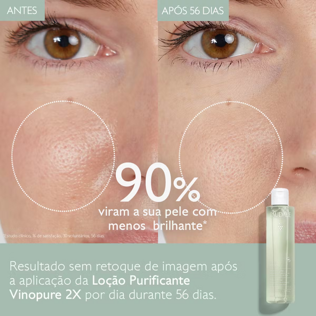 A Loção Vinopure encerra os poros, reduz as imperfeições e o brilho. A pele é purificada, matificada e apresenta-se perfeitamente limpa.